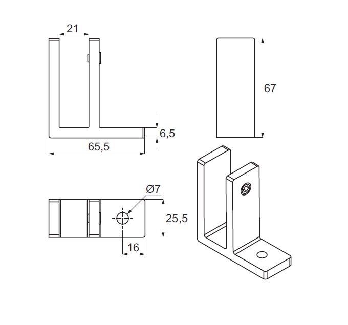 Glass Stiffener "Heavy", Wall/Glass, 90DG, SS316-Brushed, 16,76 - 19 mm Glass Thickness