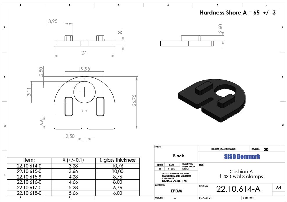 Cushion "A" F/SS Clamp "Oval-S", Glass 6mm (5,66mm), Black EPDM