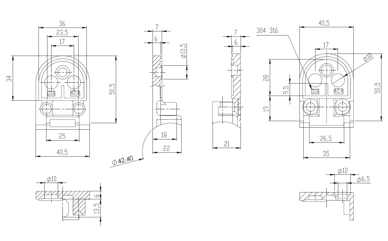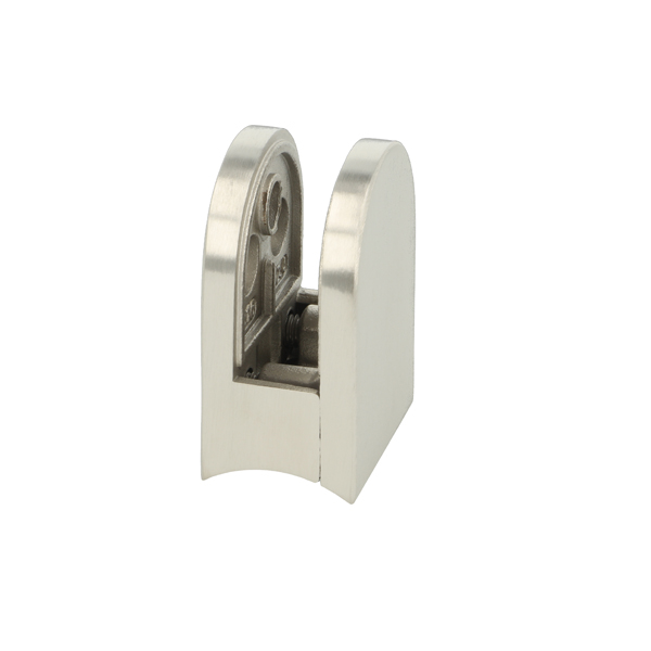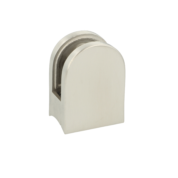 Glass Clamp "Oval-S" 45x55x27mm, SS316-Brushed, ø42,4mm Tube, 6-10,76mm Glass Thickness,No Safety Pin & No Cushions (Cushion Model A)