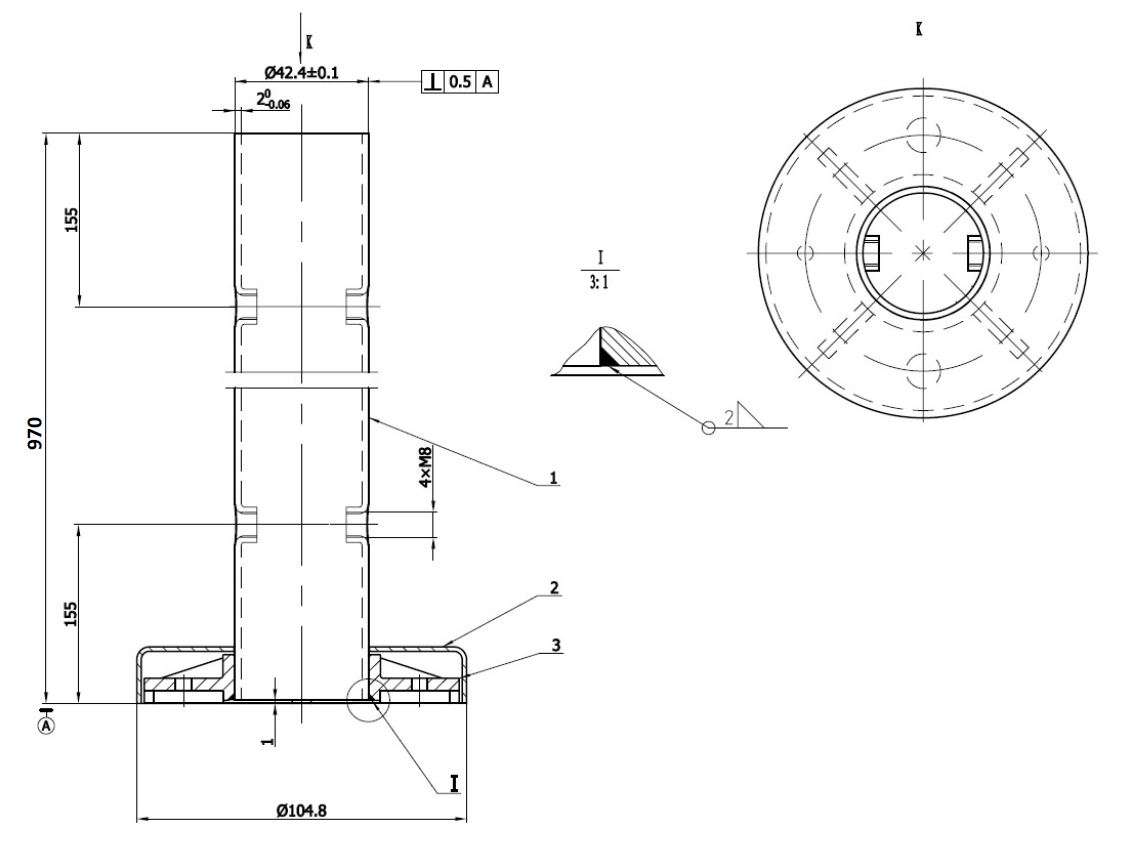 180DG Baluster SS316 Brushed,ø42,4x2x970mm,4 Holes Two Side
