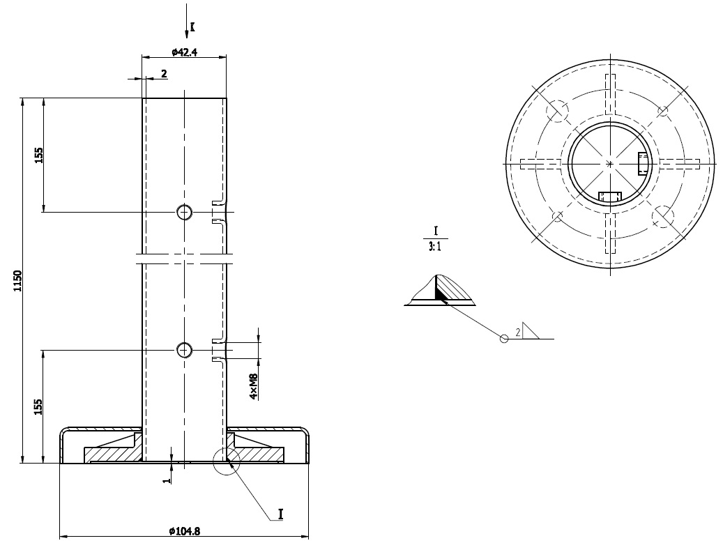 90DG Baluster SS316 Brushed,ø42,4x2x1150mm,4 Holes Two Side
