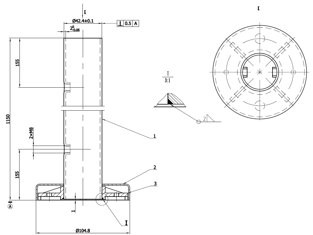 End Baluster SS316 Brushed,ø42,4x2x1150mm, 2 Holes One Side