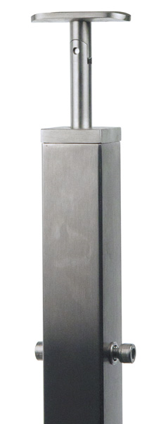 Baluster Post SS304, 40x40x1,5mm, L 879mm, 180DG,W/Flexible Hand Rail, 4 Through Holes W/M8x14mm Screws F/Clamps, Incl. Base Cover Cap & 4 Floor Plugs & Screws, W/Flat Handrail,All Brushed SS304, (Glass Clamps to Be Bought Seperately)