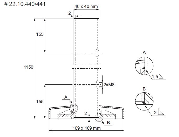 SQ End Baluster SS316 Brush,40x40x2x1150mm,2 Holes One Side