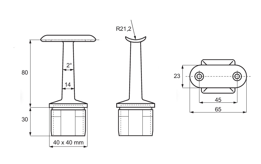 Square Fixed Round Rail Support,SS316-Brushed,40x40x2x79mm