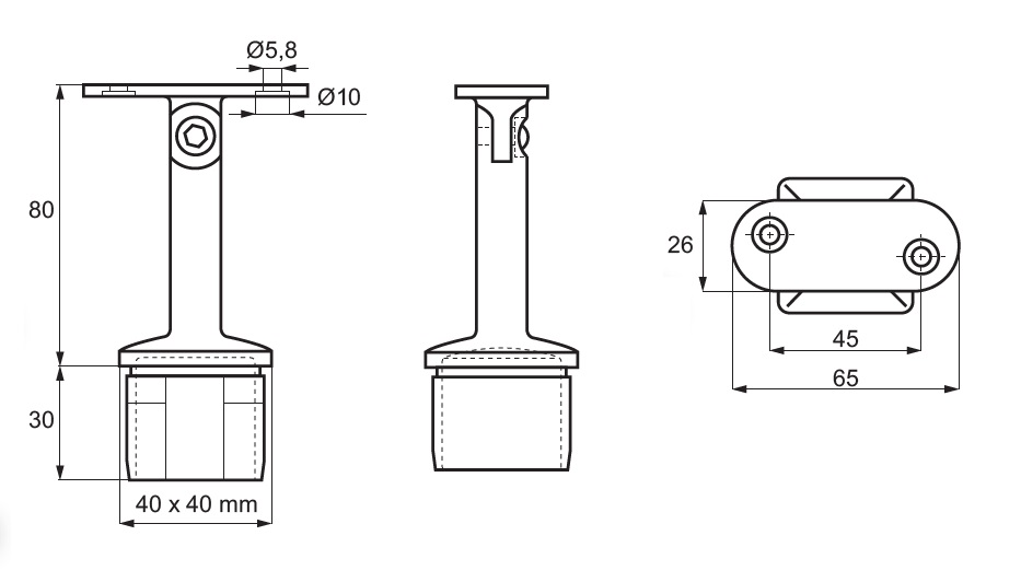 Square Flexible Flat Rail Support SS316 Brushed,40x40x2x79mm