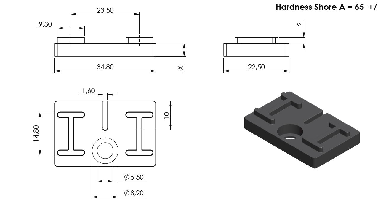 Cushion "H" F/ZA Clamp "Square BT", Glass 12mm (2,70mm), Black EPDM