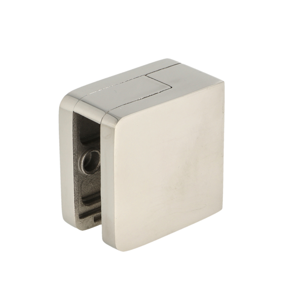 Glass Clamp "Square" 45x45x23mm, SS316-PSS, Flat, W/Bottom Plate, 6-10,76mm Glass Thickness, No Safety Pin & No Cushions, (Cushion Model C) Max Load Capacity Pr.Pcs: 25Kg. (Safety Pin 22.10.639).