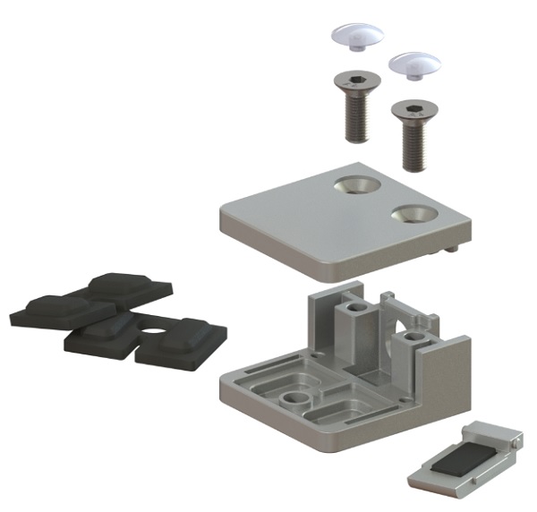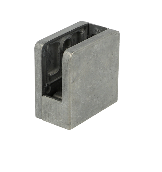 Glass Clamp "Square" 45x45x23mm, Zamak-Raw, Flat, 6-12,76mm. Glass Thickness, Incl. Safety Pin BUT No Cushions, W/Bottom Plate(Cushion Model H)