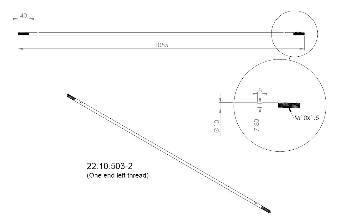 Canopy Rod Connector SS316,ø10 (M10) x 1055mm, Left & Right