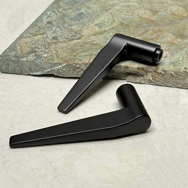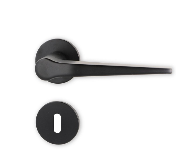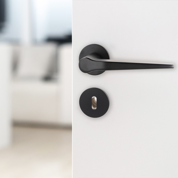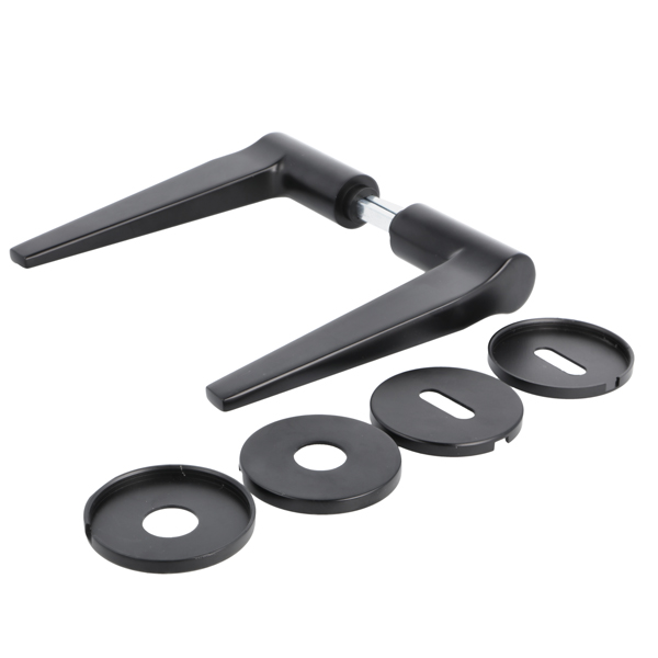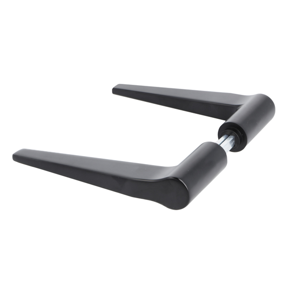 Zamak Door Handle "Funk", Black Finish, 8x8x95mm Split Spindle, Incl. Round Spring Rosettes, Oval Key Hole Escutcheons, Hex Key, Wooden Screws, M4 Connecting Screws & Washers. cc: 38mm. Door Thickness: 38-50mm.