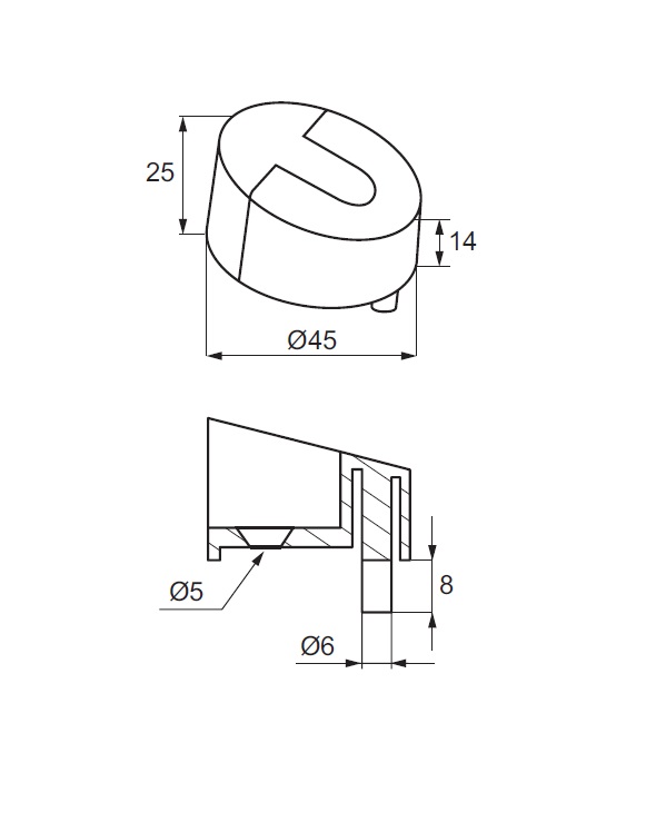 Door Stopper "Jang",ø45x25mm, SS304 Brushed, Incl. 1 Screw & Nylon Plug
