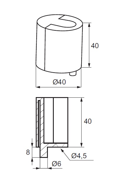 Door Stopper "Jing", ø40x40mm,SS304 Brushed, Incl. 1 Screw & Nylon Plug