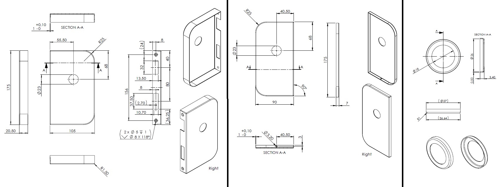 Cover Plates "Robin",W/Handle Hole, Right, SS-304 Brushed