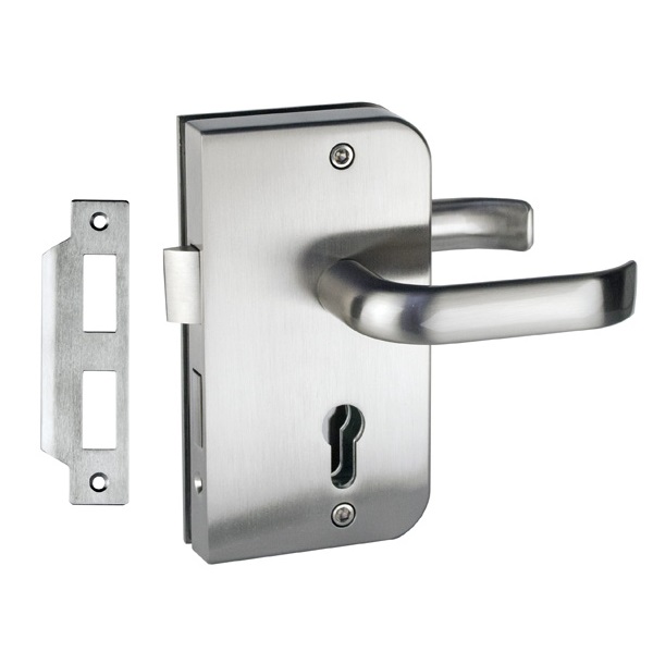 Glass Door Lock "Freja" Right, Small Striker, Zamak SS-Look Glass 10-18mm, Without Cylinder