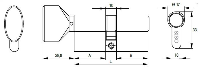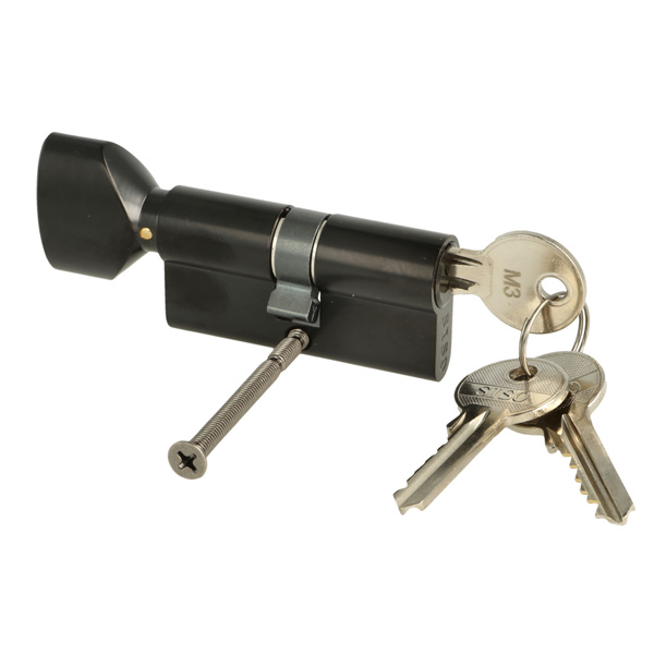 Profile Cyl, Black Finish, 62mm,(26+10+26mm) W/Knob #3, #M3 MKS Yale Key Way, W/3 Metal Keys:SISO, W/Screw Masterkey Shall Be Ordered Separately