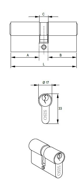 Profile Cylinder, SS-Look, 62mm,(26+10+26mm) Yale Key Way, W/3 Metal Keys:SISO ,W/Screw