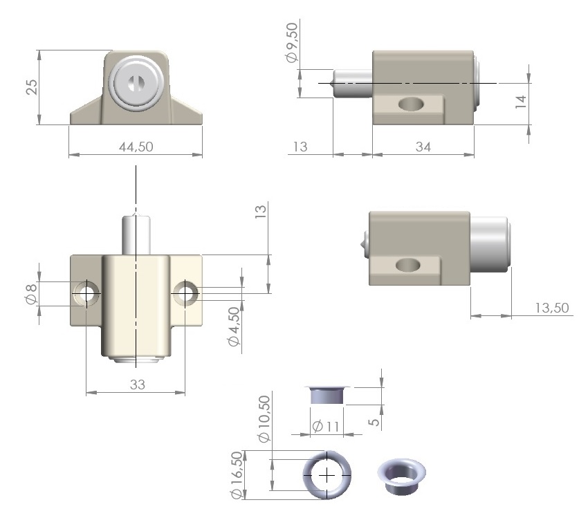 Window Push Lock 280, ø19, Silver Powder Coated, KA E30, CK SISO, W/Sleeve