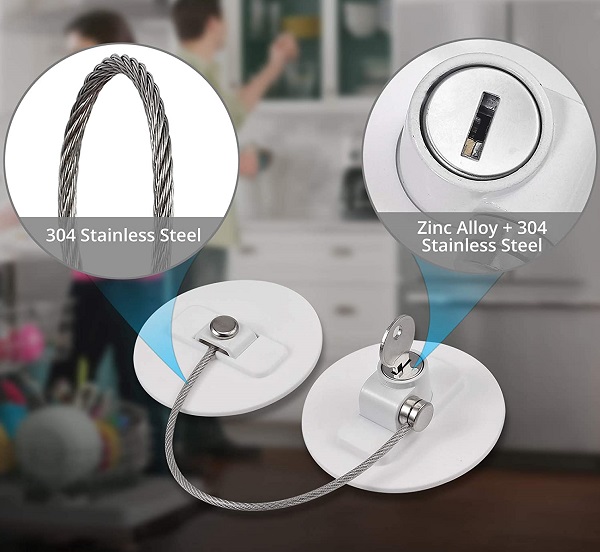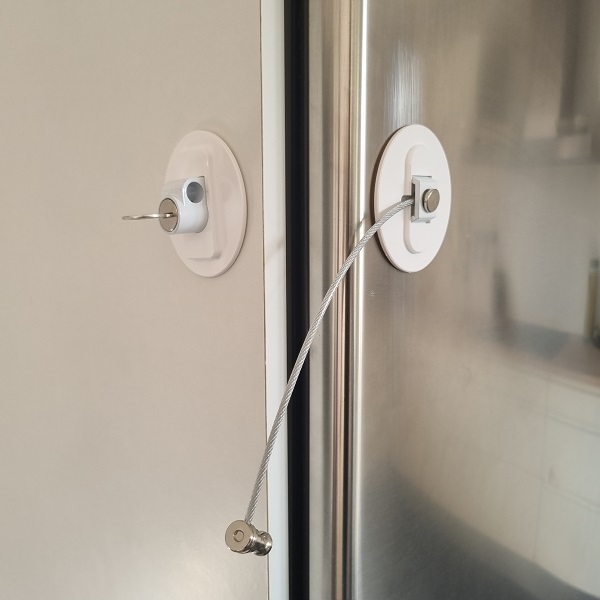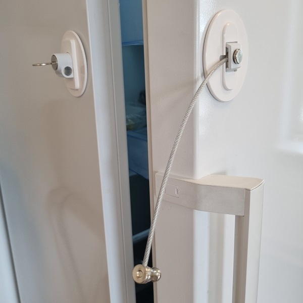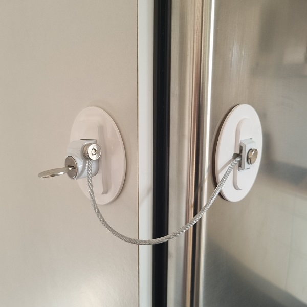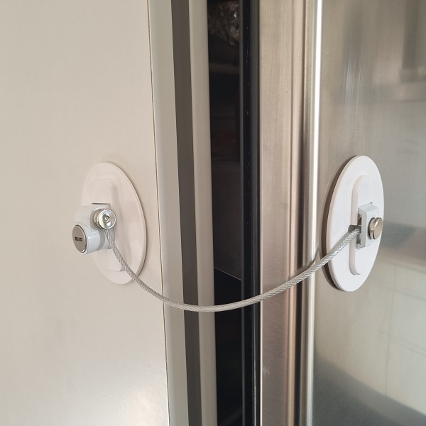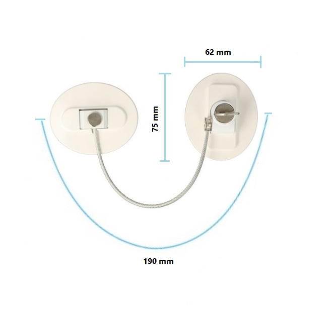 Window Wire Lock, White, W/Adhesive Tape, SS-304 Transp.Wire - 190mm, W/Key Alike