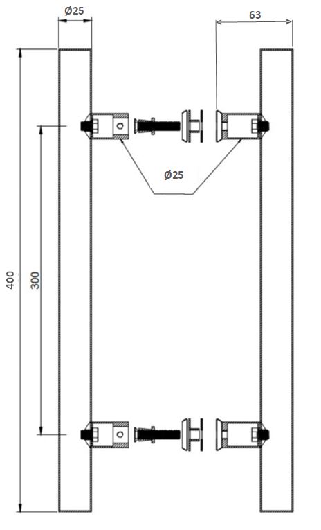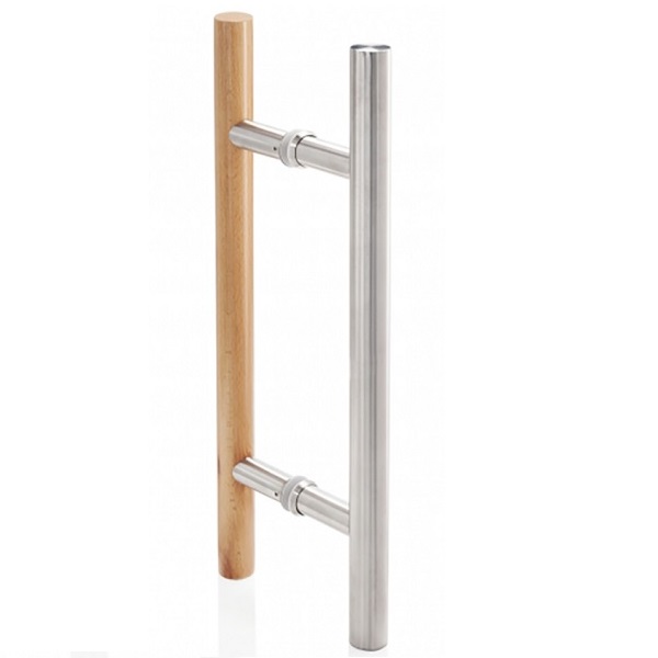 Sauna Door Handle "Drava" SS304 Brushed, ø25x400mm, cc 300mm 8-12mm Glass Thickness, Bore: ø12mm; Beech Wood - lacquered + Brushed SS304