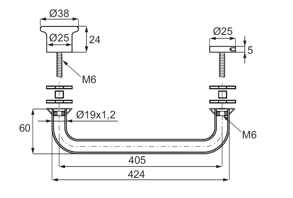 Towel Bar "Loire" W/Pull Knob, SS304 Black Finish, ø19x424mm , cc 405, 8-12mm Glass Thickness