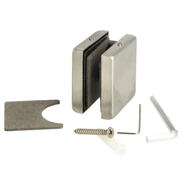 Glass Clamp "Zip", 52x52x33-35mm,Wall/Glass,Brushed SS-304 , 8-12mm Glass