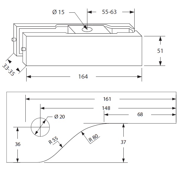 Zamak Body F/"Zip"(PF20) Top Fitting, W/O Cover Plates, 10- -12mm Glass Thickness