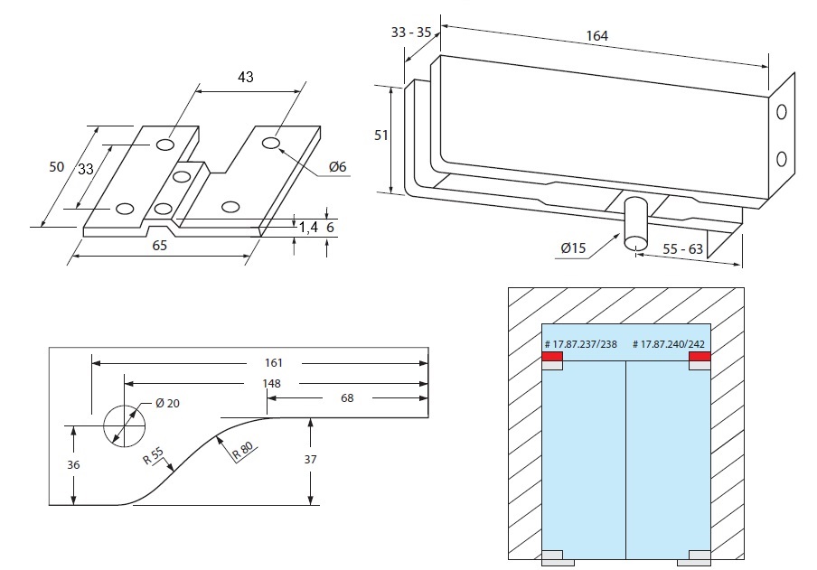 Zamak Body F/"Zip"(PF50)Wall Mounting Fitt.,W/O Cover Plates 10-12mm Glass Thickness