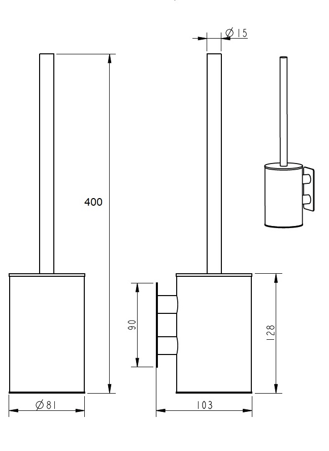 Toilet Brush Holder "Pisa", Adhesive, SS304, Polished, ø81 x128mm