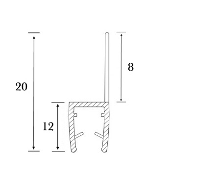 PVC Seal Glass To Floor, S-5702, 2,5 Mtr, F/8mm Glass ,With 8mm Soft Fin