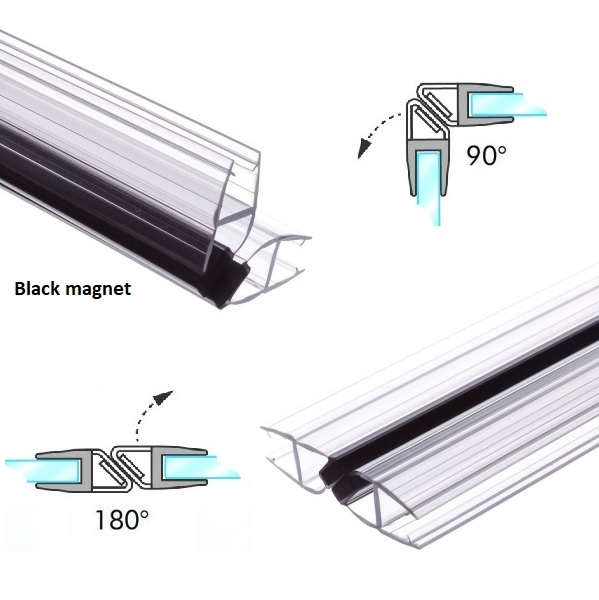 PVC Seal Glass To Glass, Black Magnet, 90/180DG, S-5711,F/10 mm Glass, 2,5 Mtr.