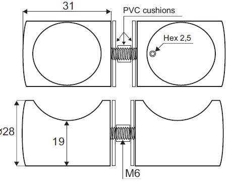 Brass Door Knob "Haag I", ø28mm, Alu-Look, 6-12mm Glass Thickness, Drill Hole ø10 mm