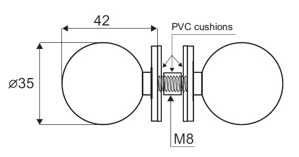 Brass Door Knob "Paris", ø35mm, Alu-Look, 8-12mm Glass, Drill Hole ø12 mm