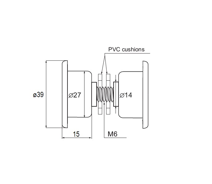 Door Knob "Kiel", ABS Plastic, ø39mm, CPL, 6-12mm Glass, Drill Hole ø15 mm