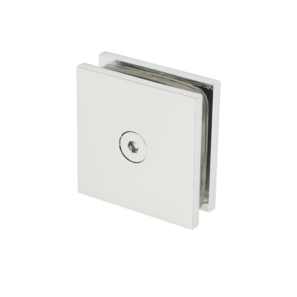 Glass Clamp "Bern", 180DG, CPL, Wall/Glass, 51x51x17mm, Square Corners, F/8-10mm Glass,Wall Mounted By 2 x ø5mm Screw Holes,Glass Mounted By ø12mm Drilling, Brass Material