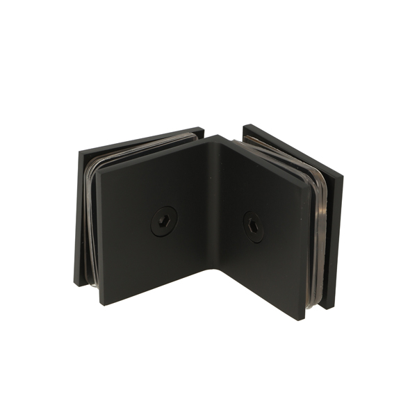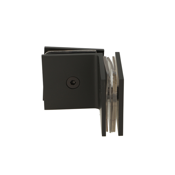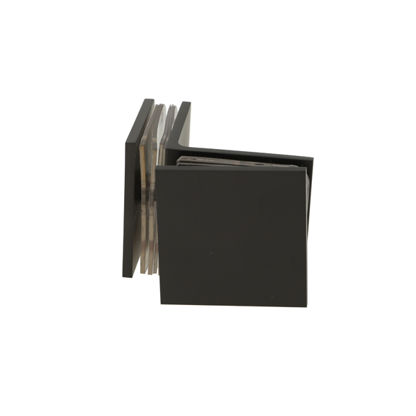 Glass Clamp "Bern", 90DG, Black Finish,Glass/Glass, 51x51x17 mm, Square Corners, 8-10mm Glass, Glass Mounted By ø12mm Drilling, Brass Material