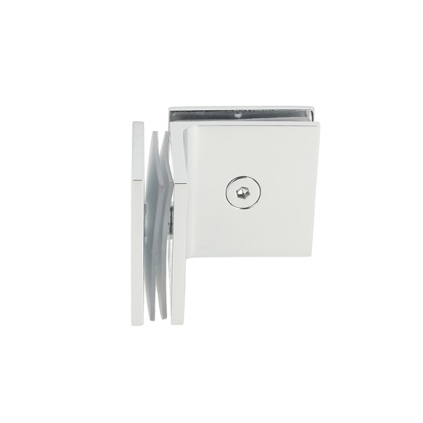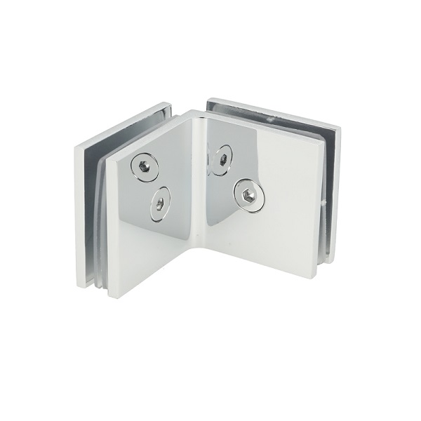 Glass Clamp "Bern", 90DG, CPL, Glass/Glass, 51x51x17mm, Square Corners, 8-10mm Glass, Glass Mounted By ø12mm Drilling, Brass Material