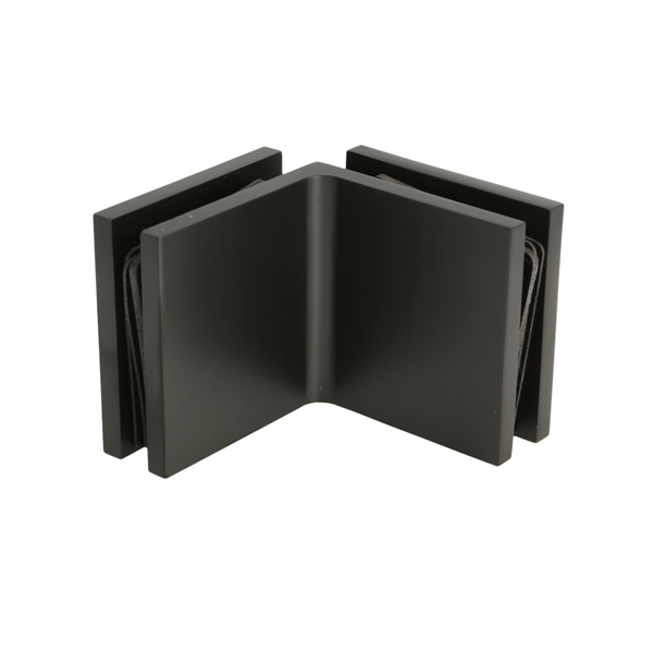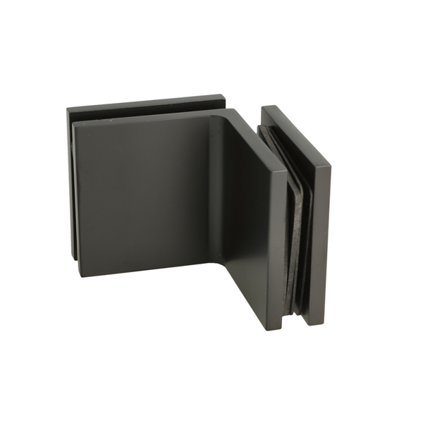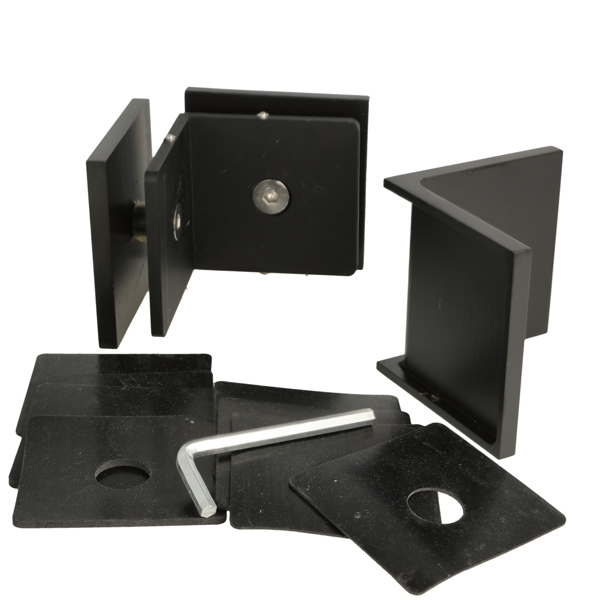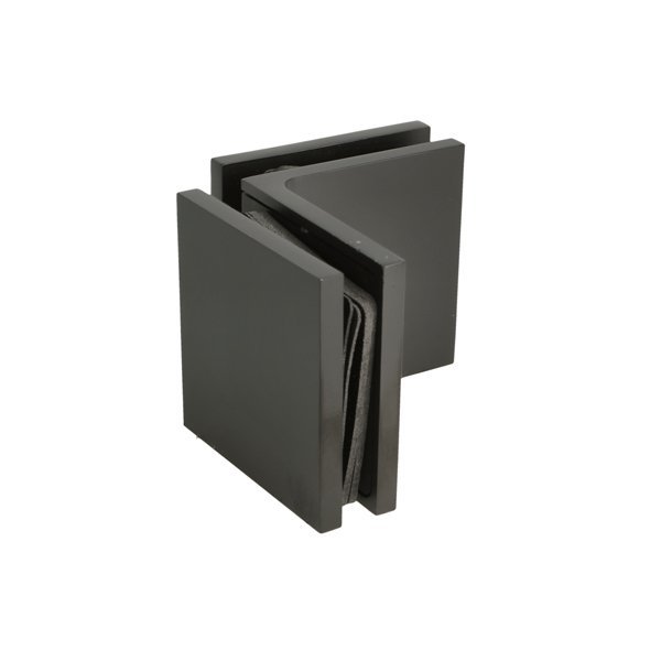 Glass Clamp "Lima", 90DG, Black, Glass/Glass, 60x60x20,5mm, 6-10mm Glass, Glass Mounted By ø14mm Drilling, Hidden Screws, Brass, Alu & SS-304 Material