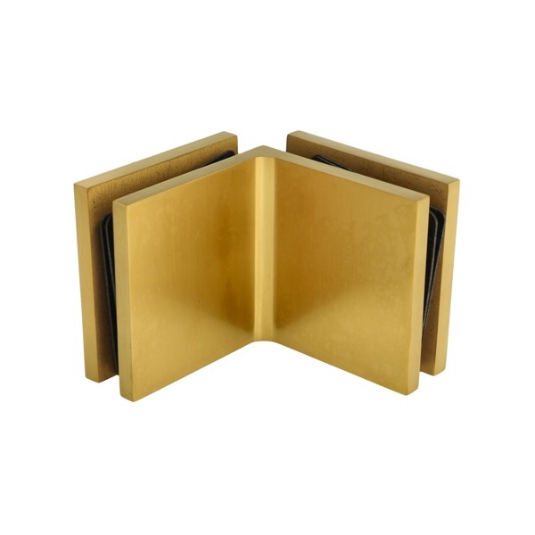 Glass Clamp "Lima", 90DG, Brushed Brass, Glass/Glass, 60x60x 20,5mm, 6-10mm Glass, Glass Mounted By ø14mm Drilling,Hidden Screws, Brass, Alu & SS-304 Material