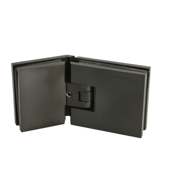 Shower Hinge "Lima", 135DG, Black, Glass/Glass, 6-10mm Glass Thickness, W/15 DG Angle Adjustment Function & 15DG Return Function, Brass Material, Hidden Screws. Black Rubber Gaskets: 4 x 1mm & 4 x 2mm Thickness. Load Capacity Pr. Pair: 45kg