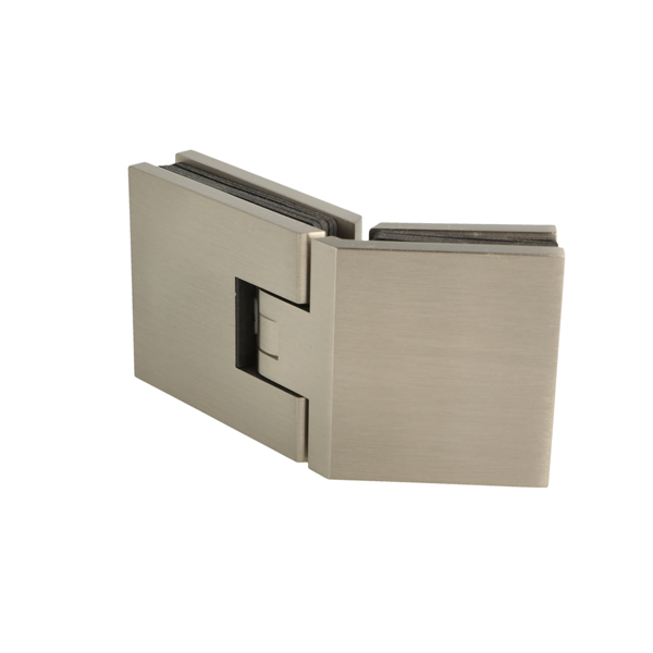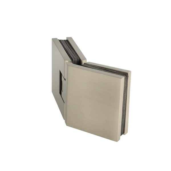 Shower Hinge "Lima", 135DG, SS-Look, Glass/Glass, 6-10mm Glass Thickness, W/15 DG Angle Adjustment Function & 15DG Return Function, Brass Material, Hidden Screws. Black Rubber Gaskets: 4 x 1mm & 4 x 2mm Thickness. Load Capacity Pr. Pair: 45kg