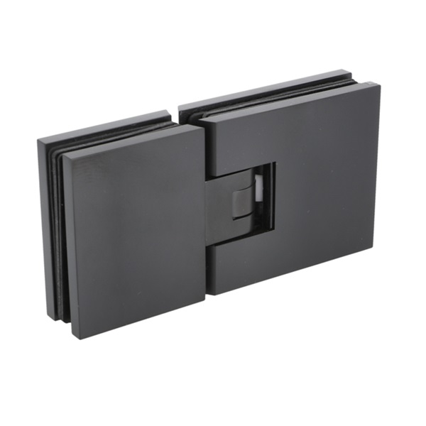 Shower Hinge "Lima", 180DG, Glass/Glass, Black, 6-10mm Glass Thickness, W/15 DG Angle Adjustment Function & 15DG Return Function, Brass Material, Hidden Screws. Black Rubber Gaskets: 4 x 1mm & 4 x 2mm Thickness. Load Capacity Pr. Pair: 45kg
