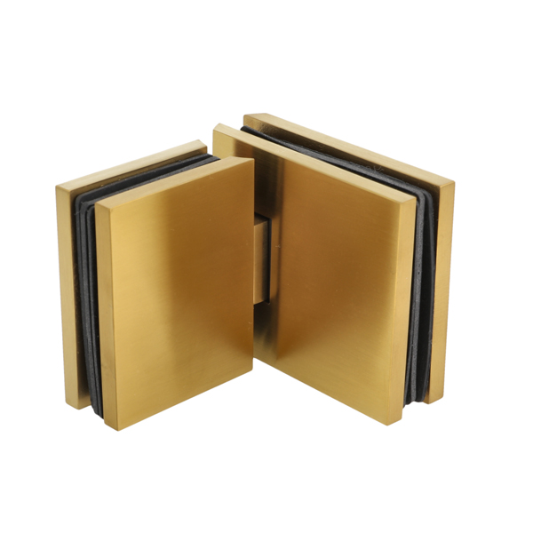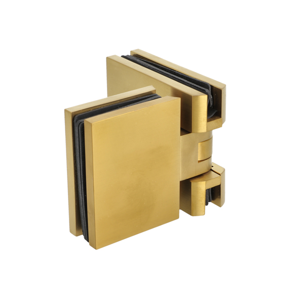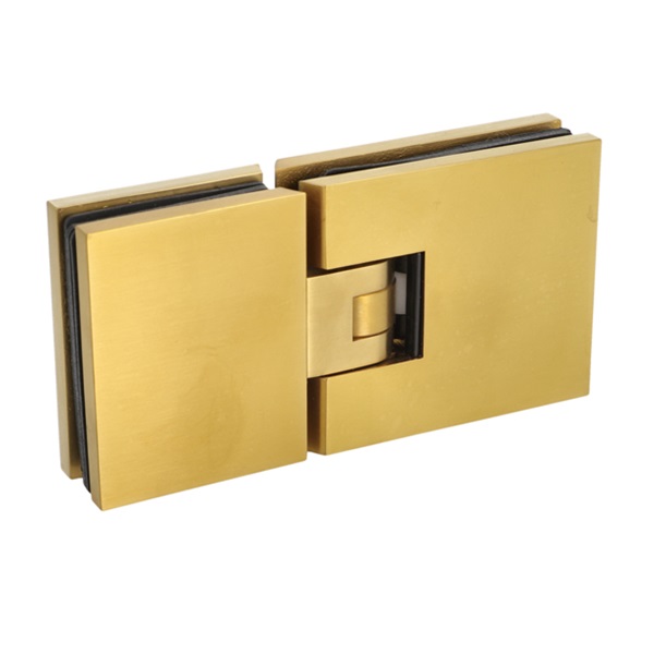 Shower Hinge "Lima", 180DG, Glass/Glass, Brushed Brass, 6-10 mm Glass Thickness, W/15 DG Angle Adjustment Function & 15DG Return Function, Brass Material, Hidden Screws. Black Rubber Gaskets: 4 x 1mm & 4 x 2mm Thickness. Load Capacity Pr. Pair: 45kg