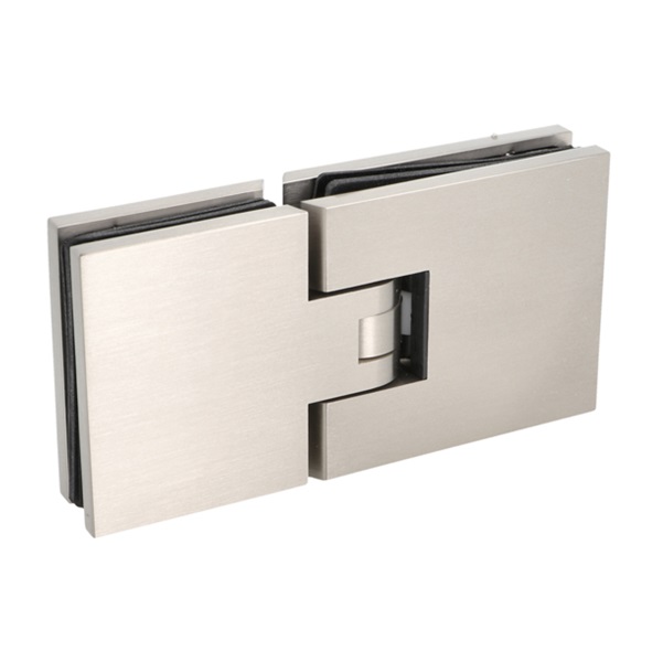 Shower Hinge "Lima", 180DG, Glass/Glass, SS-Look, 6-10mm Glass Thickness, W/15 DG Angle Adjustment Function & 15DG Return Function, Brass Material, Hidden Screws. Black Rubber Gaskets: 4 x 1mm & 4 x 2mm Thickness. Load Capacity Pr. Pair: 45kg