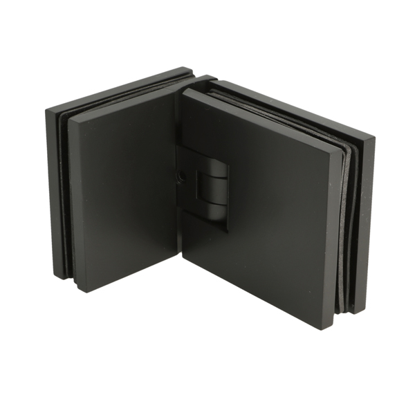 Shower Hinge "Lima", 90DG, Glass/Glass, Black, 6-10mm Glass Thickness, W/15 DG Angle Adjustment Function & 15DG Return Function, Brass Material, Hidden Screws. Black Rubber Gaskets: 4 x 1mm & 4 x 2mm Thickness. Load Capacity Pr. Pair: 45kg