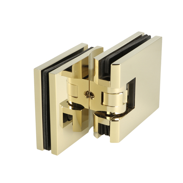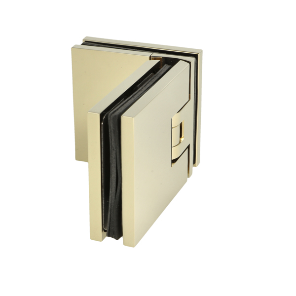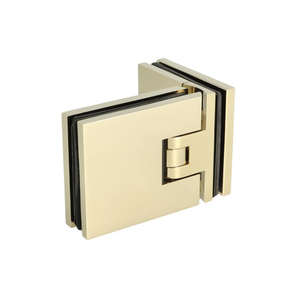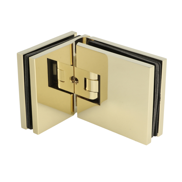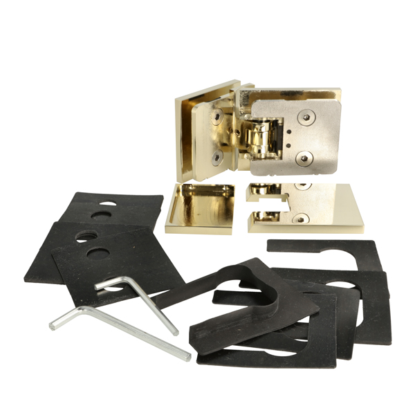 Shower Hinge "Lima", 90DG, Glass/Glass, Polished Brass, 6-10 mm Glass Thickness, W/15 DG Angle Adjustment Function & 15DG Return Function, Brass Material, Hidden Screws. Black Rubber Gaskets: 4 x 1mm & 4 x 2mm Thickness. Load Capacity Pr. Pair: 45kg