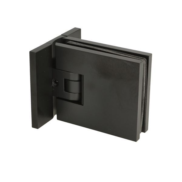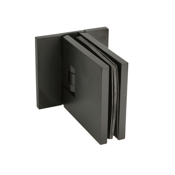 Shower Hinge "Lima", Wall/Glass, Black, Centre Back Pl, 6-10 mm Glass Thickness, W/15 DG Angle Adjustment Function & 15DG Return Function, Brass Material, Hidden Screws. Black Rubber Gaskets: 2 x 1mm & 2 x 2mm Thickness. Load Capacity Pr. Pair: 45kg