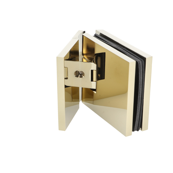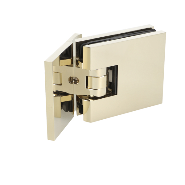 Shower Hinge "Lima", Wall/Glass, Brass Polished, Offset Back 6-10mm Glass Thickness, W/15 DG Angle Adjustment Function & 15DG Return Function, Brass Material, Hidden Screws. Black Rubber Gaskets: 2 x 1mm & 2 x 2mm Thickness. Load Capacity Pr. Pair: 45kg