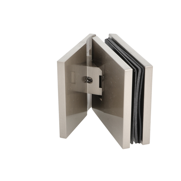 Shower Hinge "Lima", Wall/Glass, SS-Look, Offset Back Pl, 6- 10mm Glass Thickness, W/15 DG Angle Adjustment Function & 15DG Return Function, Brass Material, Hidden Screws. Black Rubber Gaskets: 2 x 1mm & 2 x 2mm Thickness. Load Capacity Pr. Pair: 45kg