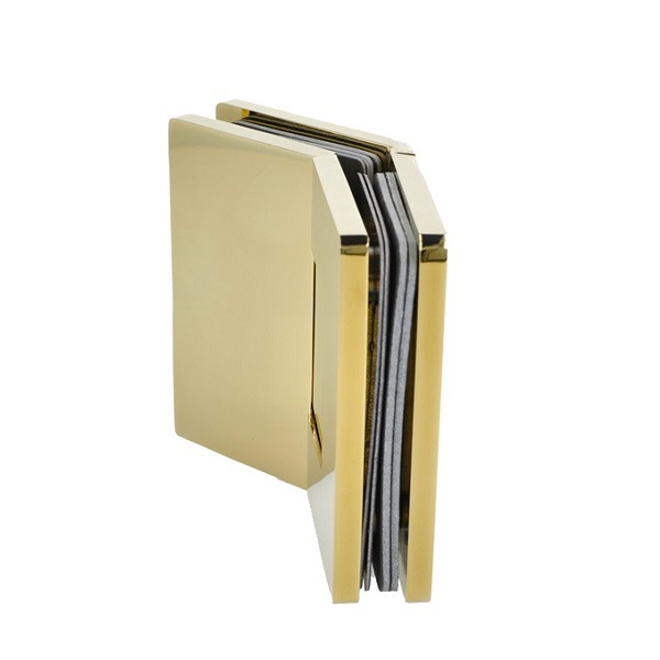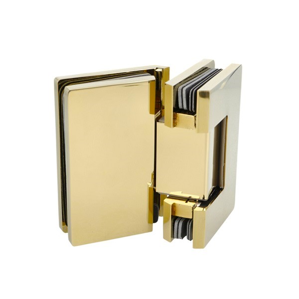 Shower Hinge "Rio", 135DG, Polished Brass, Glass/Glass, 8-10 mm Glass Thickness, W/15 DG Angle Adjustment Function & 15DG Return Function, Brass Material, Hidden Screws. Black Fiber Gaskets: 2 x 1mm & 2 x 2mm Thickness. Load Capacity Pr. Pair: 45kg